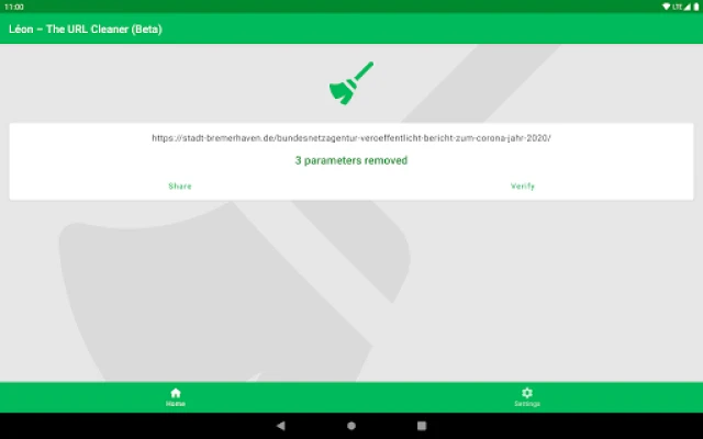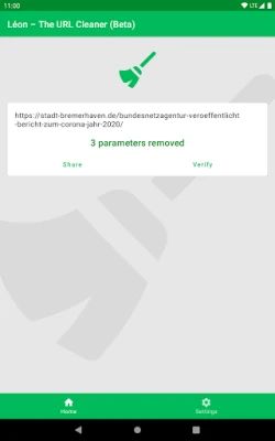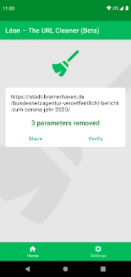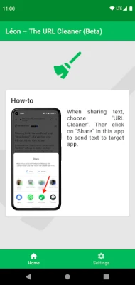 Léon - The URL Cleaner removes tracking and other obsolete parameters from a URL before sharing. Its usage is simple, integrating into Android's standard sharing mechanism.