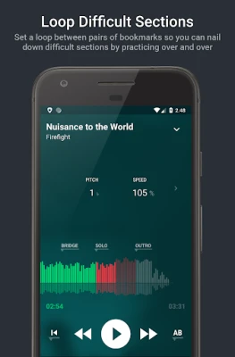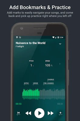 It also provides bookmarking and A-B looping functionality to go through those difficult parts until you get them right. You can also use the quick-jump feature to jump back to the last point you started playing from in a song, seamlessly.